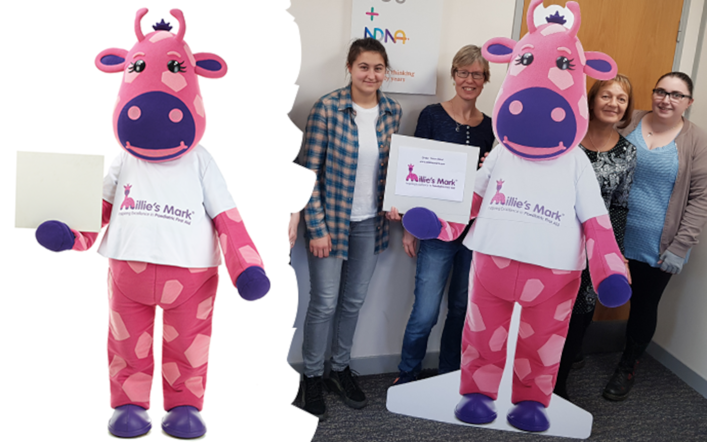 If you have been awarded Millie’s Mark you can now purchase your very own Millie Giraffe lifesize pop-up character!
